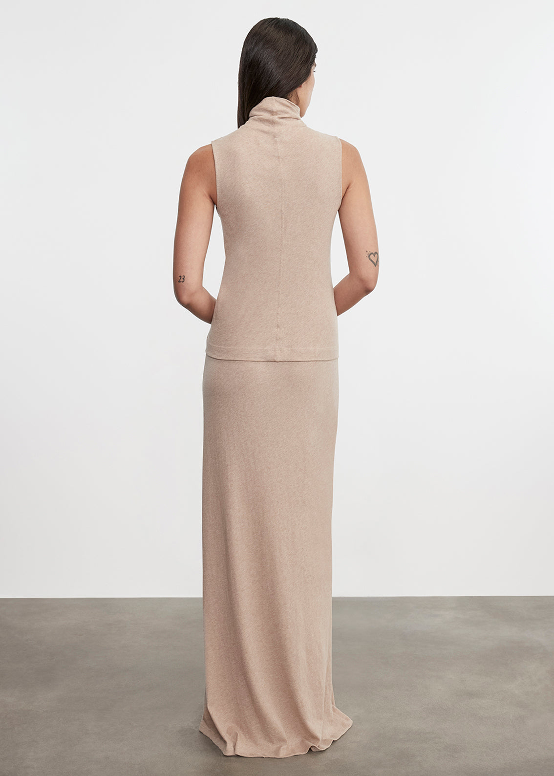 A maxi length bias skirt cut from the brand's signature soft cashmere jersey. Features an elasticized waistband.