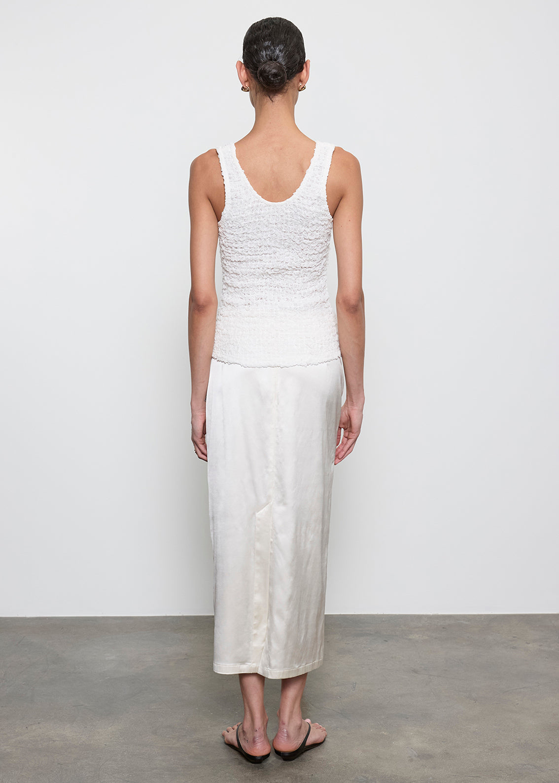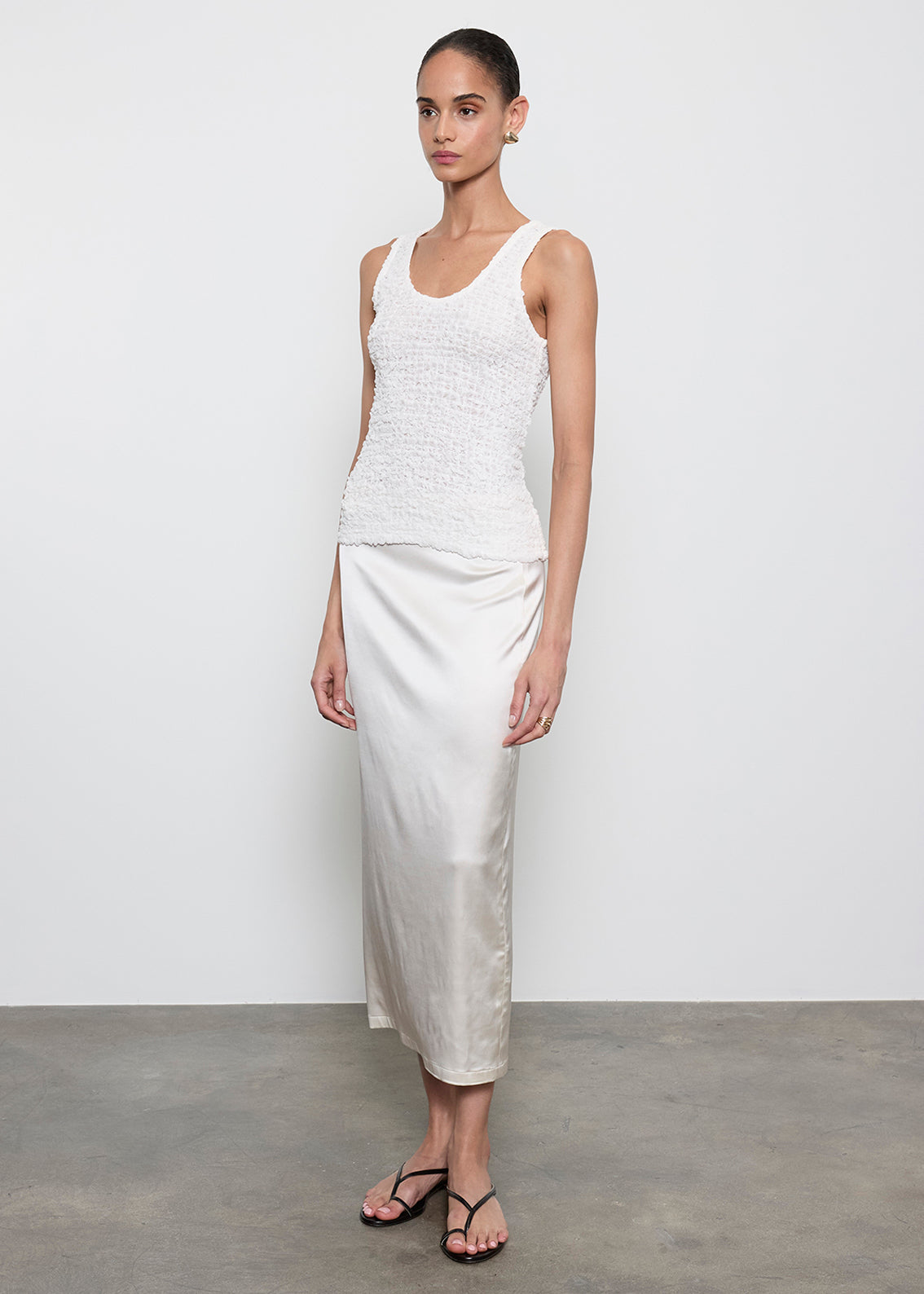 A lightweight textured tank featuring a scoop neckline and gentle stretch for a comfortable fit.