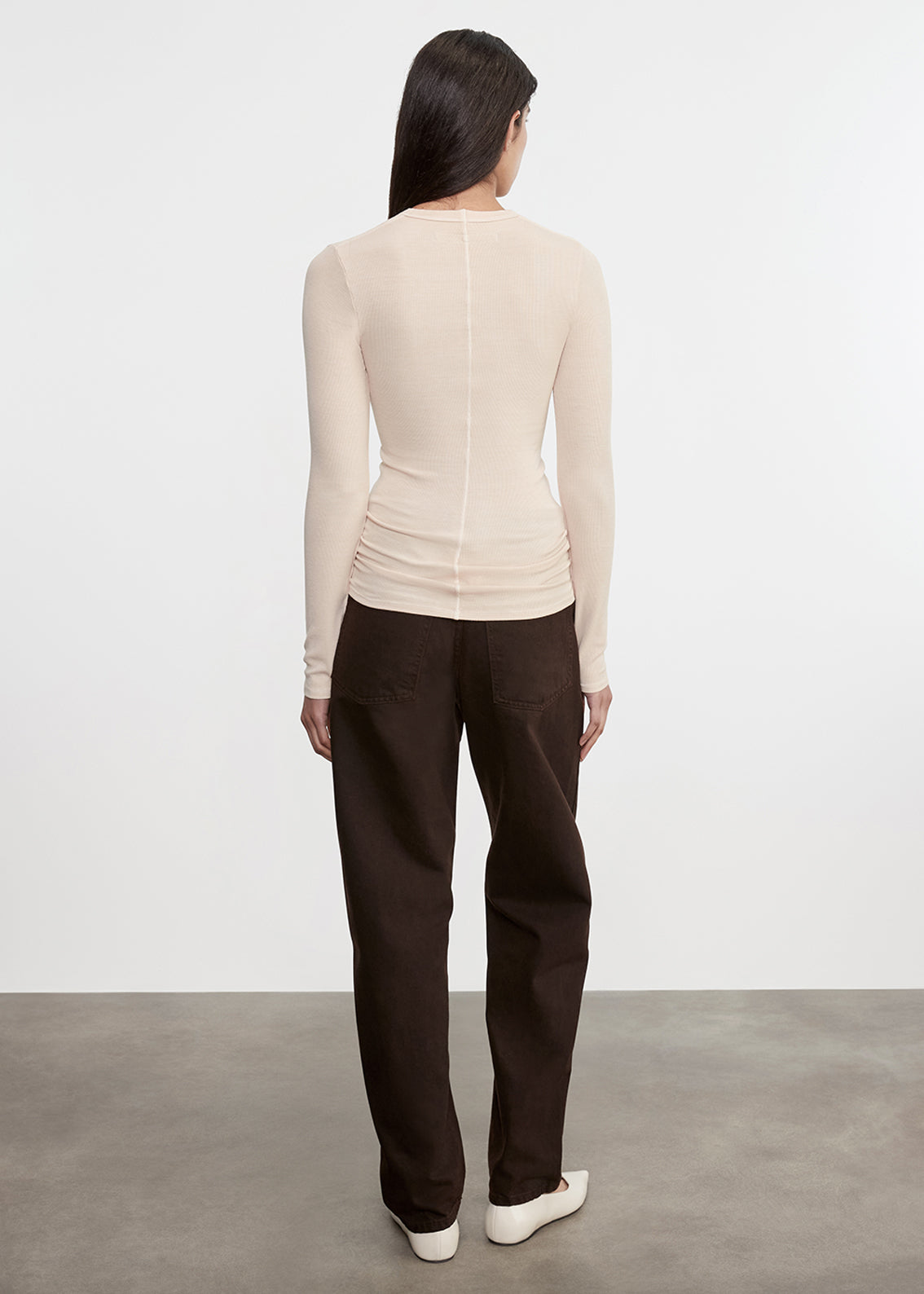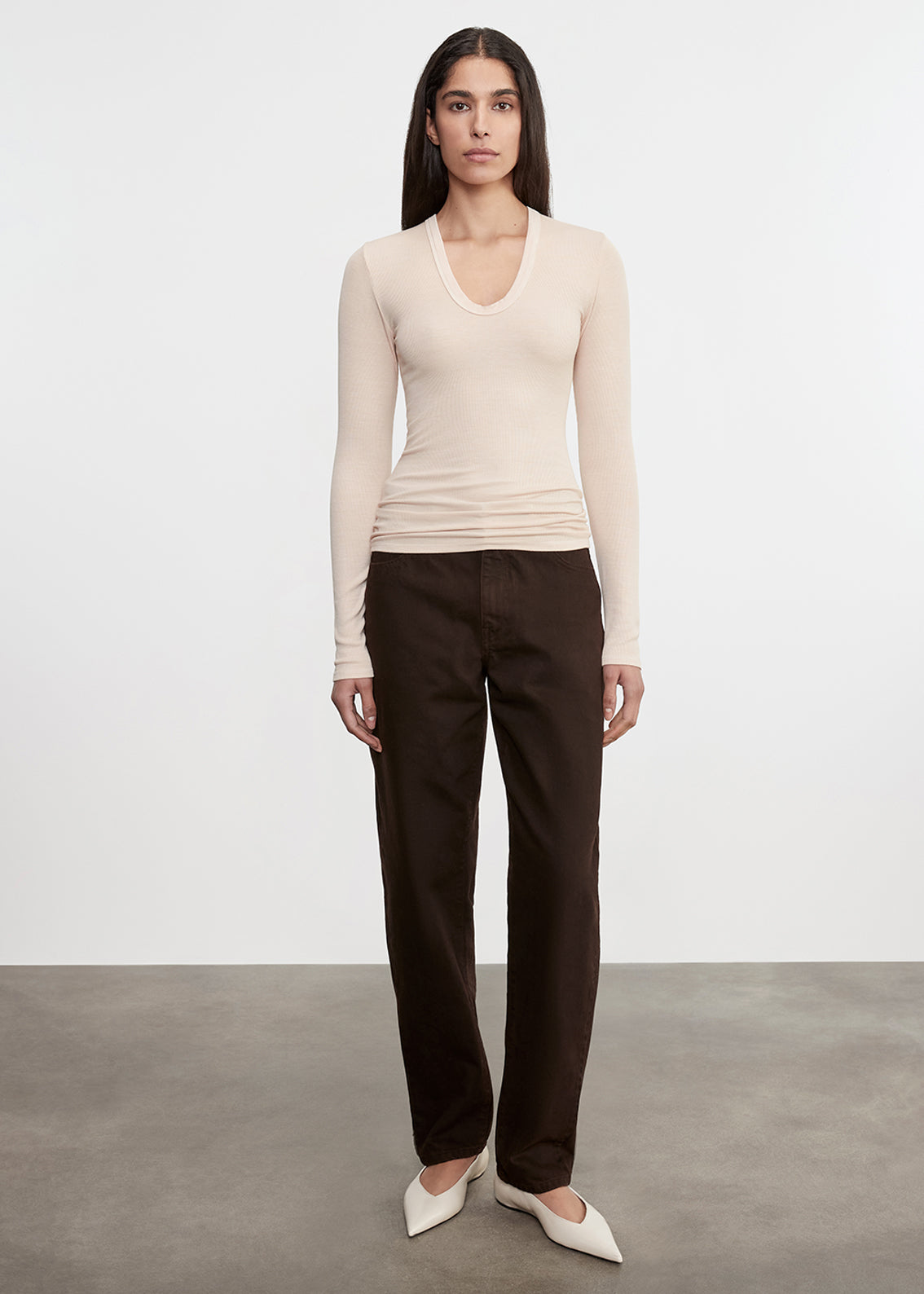 A slim long-sleeved U-neck in our best-selling silk rib fabric. Soft and luxurious, this piece is perfect for layering or on its own.