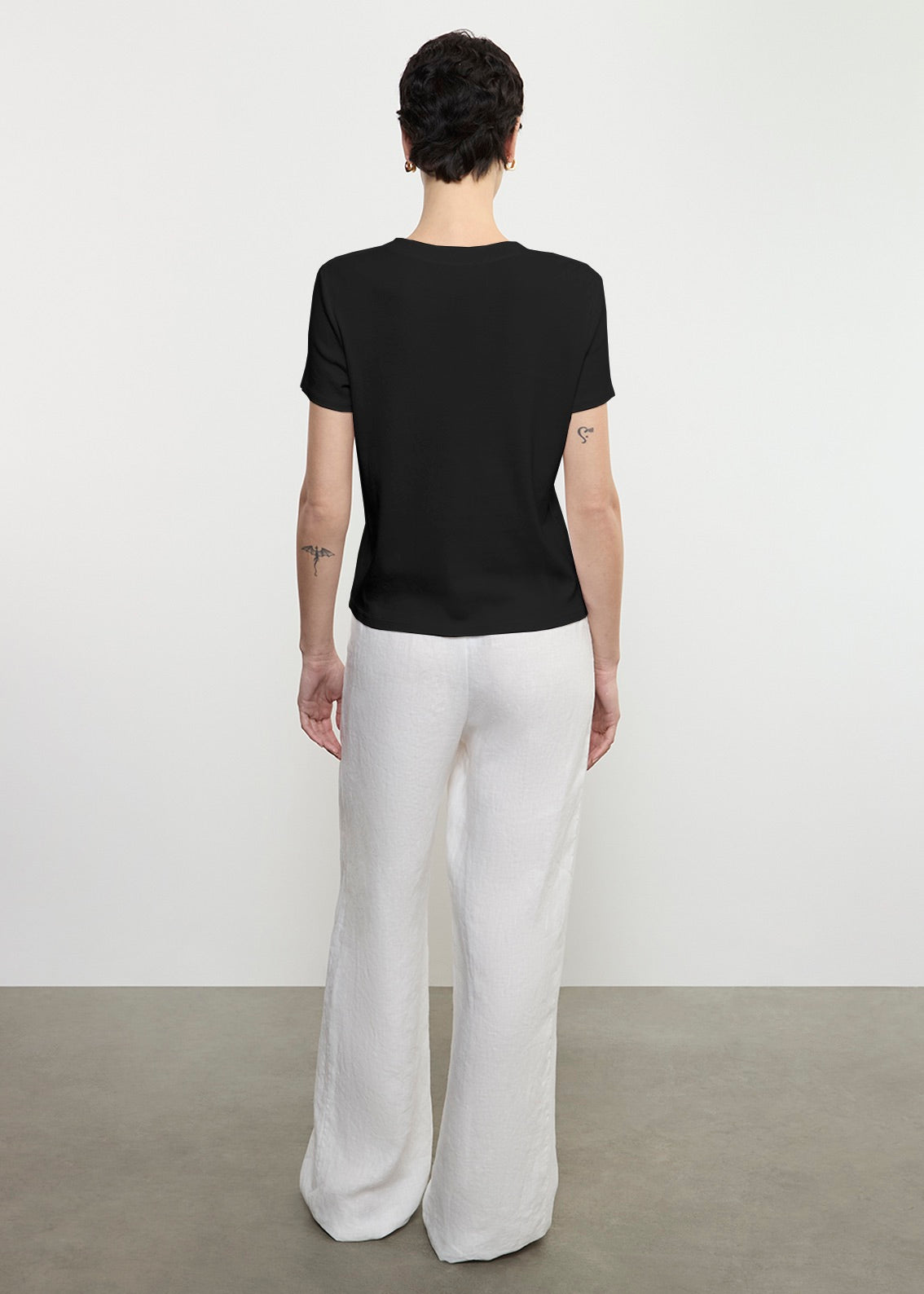 Cut from an ultra-soft 100% Supima cotton, grown and made in the USA, the Essential S/S  features a feminine neckline and minimal silhouette.